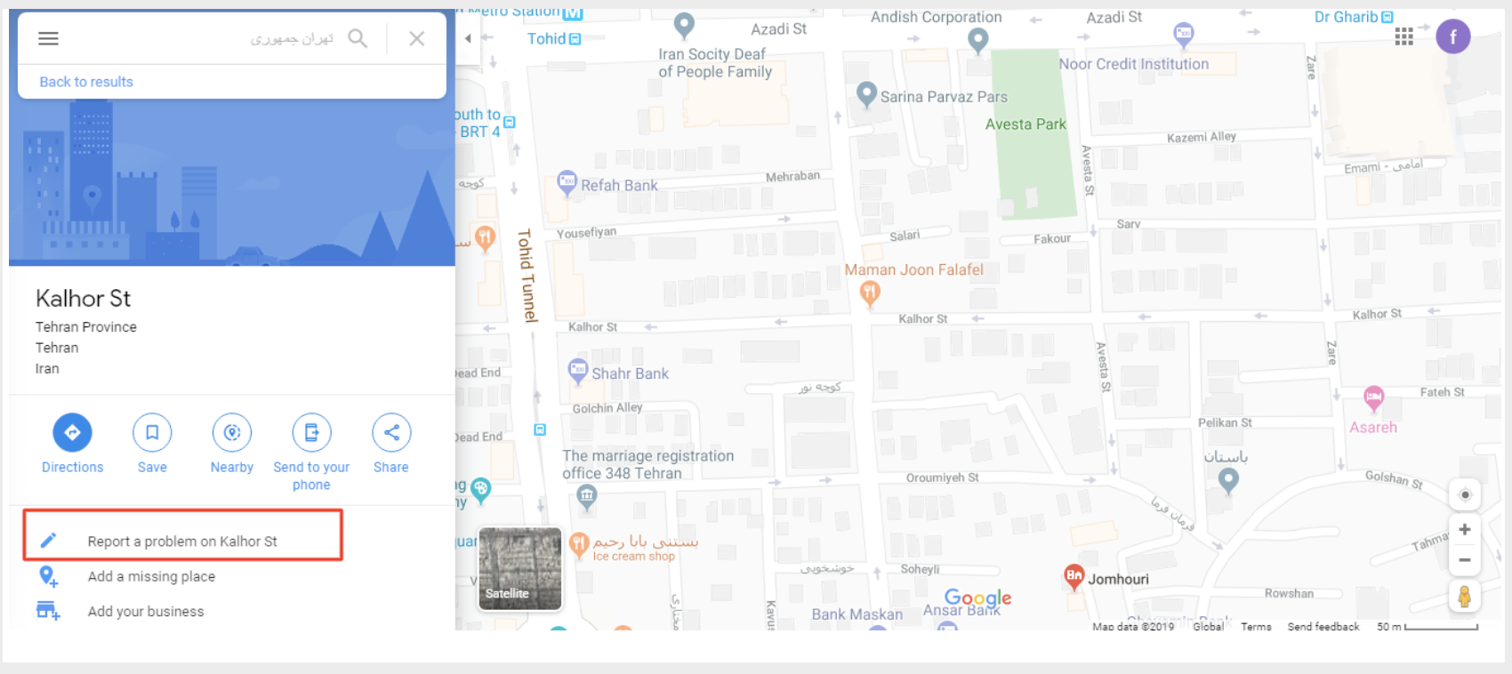 ممکن است برای شما هم پیش آمده باشد که هنگام جستجو در گوگل مپ با لوکیشن اشتباهی مواجه می‌شوید. یا متوجه می‌شوید که اسم خیابانی اشتباه ثبت شده است. بی تفاوت از کنار این مشکلات رد نشوید. با کلیک کردن بر بخش report a problem  این مشکل را گزارش دهید. گوگل از دیپر کاربران نیز سوال می‌پرسد و در صورتی که صحت گزارش شما تایید شود، آن مشکل را برطرف می کند.